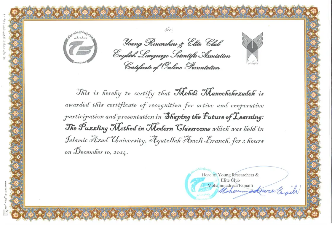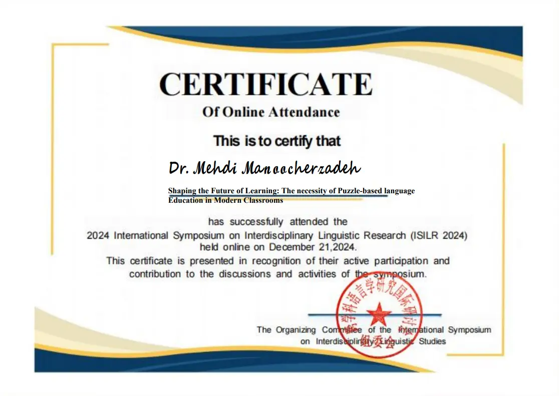 A dynamic and forward-thinking English Language Education Specialist, Dr. Mehdi Manoochehrzadeh brings over a decade of expertise in innovative language instruction and curriculum development. As the founder of both Manoochehrzadeh Language Academy and Zerodale Inc., Dr. Manoochehrzadeh has demonstrated a unique ability to lead educational initiatives that merge pedagogy with cutting-edge technology. Dr. Manoochehrzadeh has is widely recognized for developing the groundbreaking “Puzzling Method”—an interactive, learner-centered approach that has revolutionized English language acquisition for over 100,000 learners across the globe. Dr. Manoochehrzadeh has academic and professional endeavors focus on transforming traditional language education through gamified learning, adaptive technologies, and immersive instructional design. He holds multiple international certifications in English language teaching and has authored several influential publications in the field. With a passion for research-informed practice, He continues to contribute to global discussions on effective language learning strategies, with the aim of making English education accessible, engaging, and impactful for diverse learner.